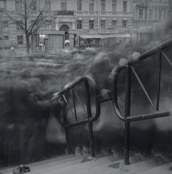 in a recent interview for St. Petersburg Diary, Titarenko talks about the creation of the now famous series City of Shadows, in particular the crowd images created at Vasileostrovskaya metro station, the only station that connects Vasilyevsky Island to the center of the city. In 1991-1992, the years just after the collapse of the Soviet Union, the city’s transportation system was paralyzed—except for the metro. Crowds of people would make their way to the only functioning escalator. Titarenko intuitively captured the scene by opening the shutter and not closing it. In this way, he was successful in capturing, through purely photographic means, the atmosphere of chaos and devastation, as well as the emotional state he experienced at the moment. Please click here to read the interview in full.